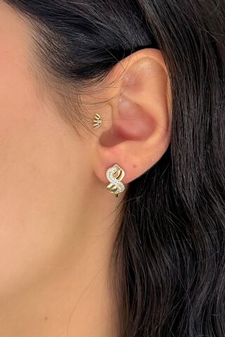 14 Ayar Altın Taşlı Sonsuzluk Küpe
